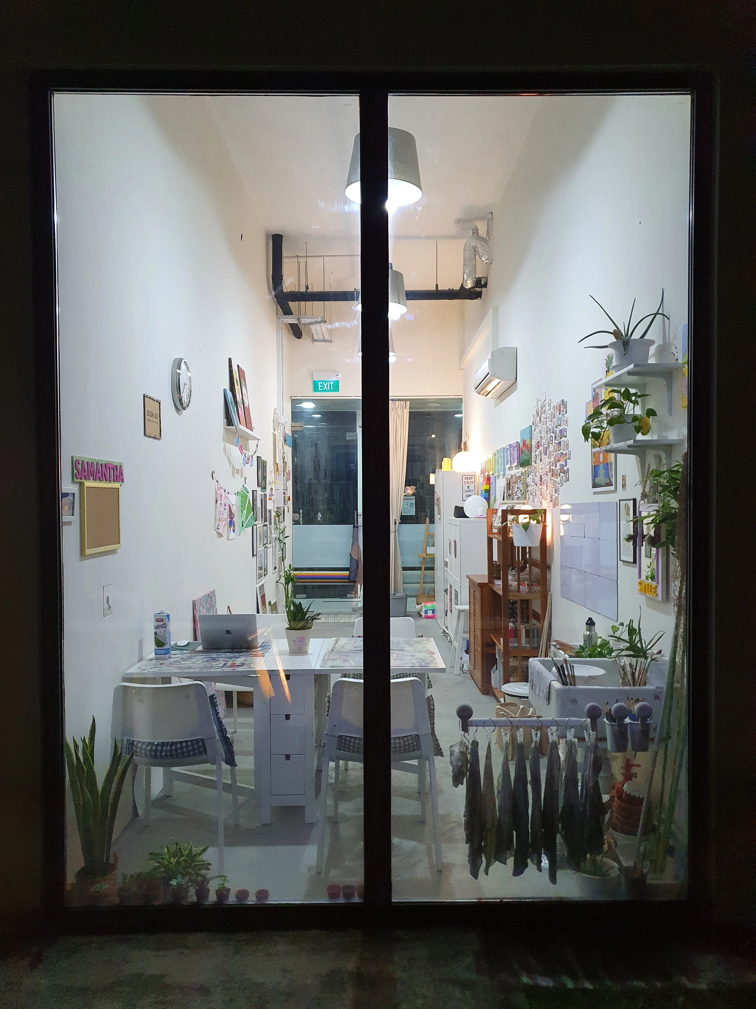 When the lights were off and this was the back of the studio taken from the common alley of the mall and apartment space.
